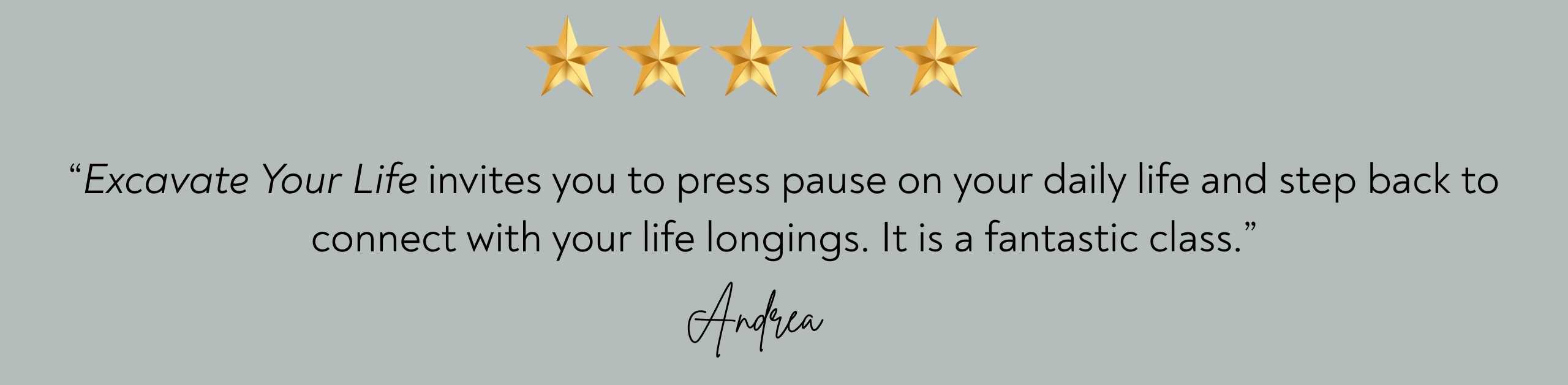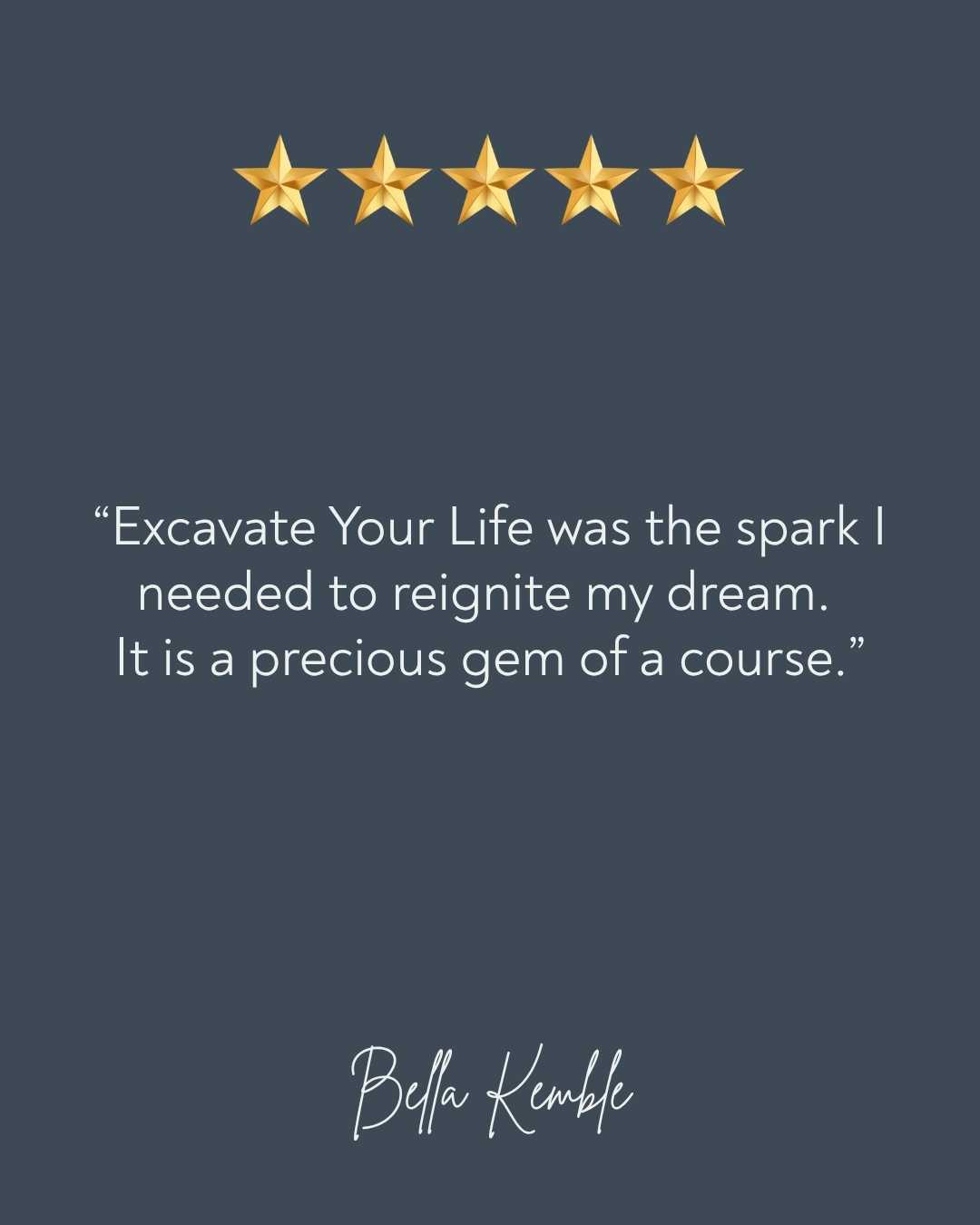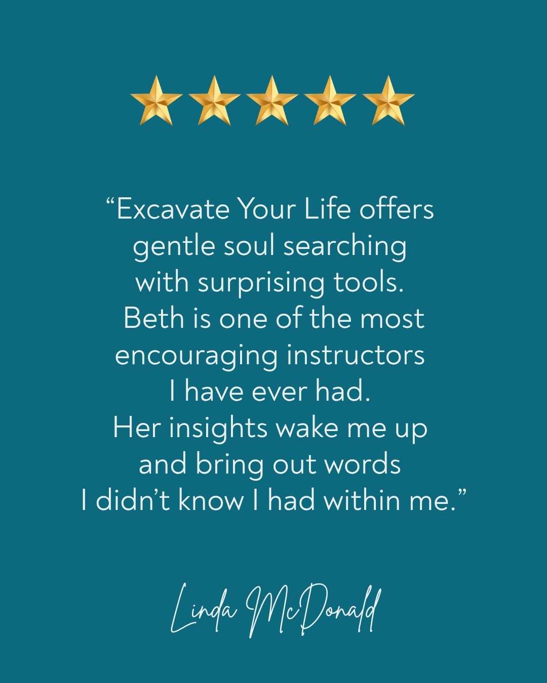 Excavate Your Life was designed as a five-week class with five lessons per week. However, you are welcome to take it at whatever pace you like, diving deep into each juicy lesson, and exploring as you go. You might like to spread it out over three months, doing two lessons a week, or make a date to visit the classroom once a week, and spread it over six months to give yourself plenty of time to think things over, or fit it into a busy life. You will have classroom access until Oct 31, 2027, so you can go at whatever pace suits you.