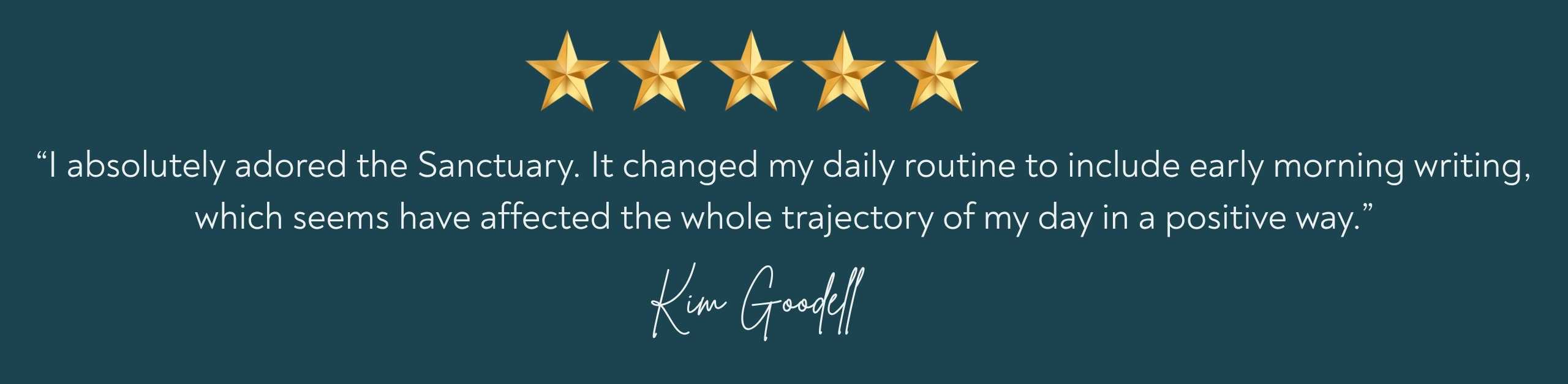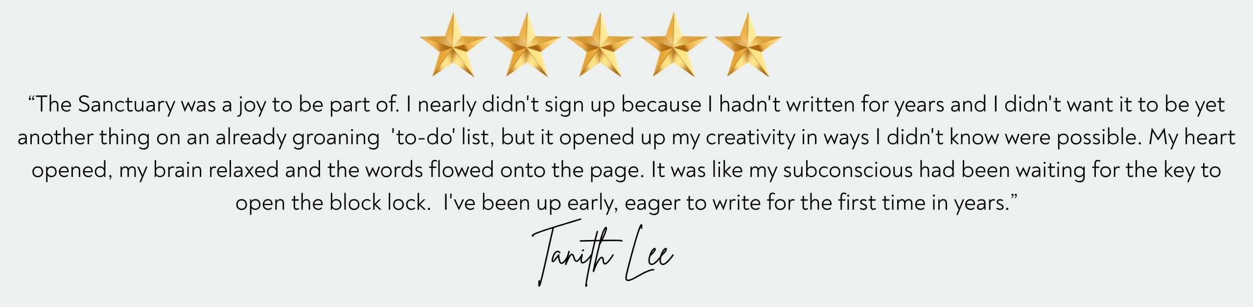 There is no such thing as a free lunch. What’s the catch? There is no catch. This is offered for free as a thank you to my amazing community, and with the intention of making writing as accessible as possible. I am aware that some of my other classes are not within some budgets, and this is my way of ensuring that at least once a year, anyone who wants to be inspired can write with me. You can see from some of the many testimonials we have received from past participants of the Sanctuary, that this is a carefully crafted course, offered with love. Indeed last year one of our students wrote in to say that we had taught her to trust again, because the Sanctuary was genuinely free with no catch.